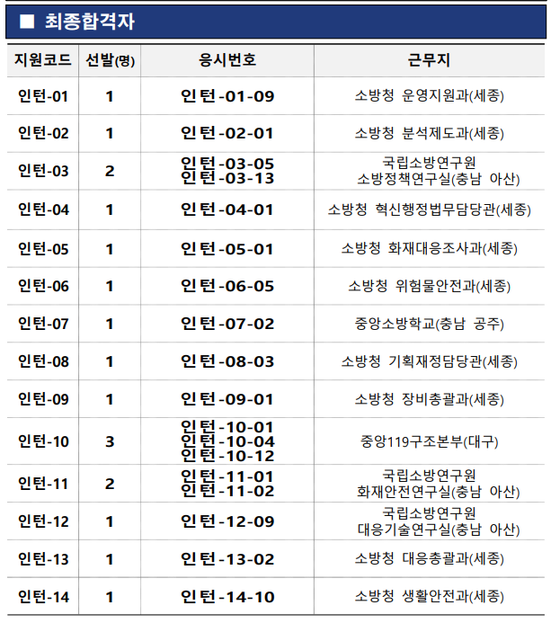 2024년 소방청 청년인턴 채용시험 최종합격자 공고