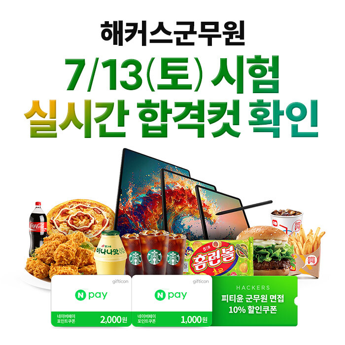 해커스, 7/13 오늘 군무원 시험 직후 정확한 가답안 및 실시간 합격컷 제공