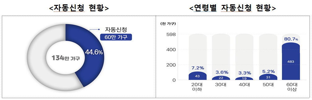 특히 올해 3월부터는 자동신청 적용 연령을 기존 60세 이상에서 전 연령으로 확대했고, 이번 9월 접수분부터 처음으로 시행됐다. 이에 따라 134만 가구 중 약 60만 가구는 자동으로 신청이 완료됐다.