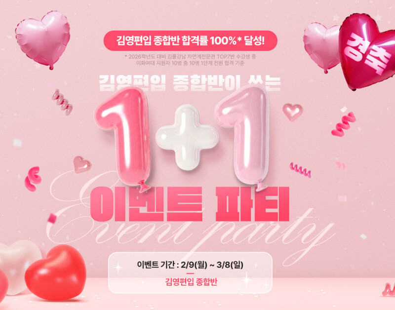 메가스터디교육 대학편입 대표 브랜드 (주)아이비김영 ‘김영편입’이 종합반 수강생을 위한 3월 이벤트 ‘1+1 이벤트 파티’를 진행한다고 밝혔다.