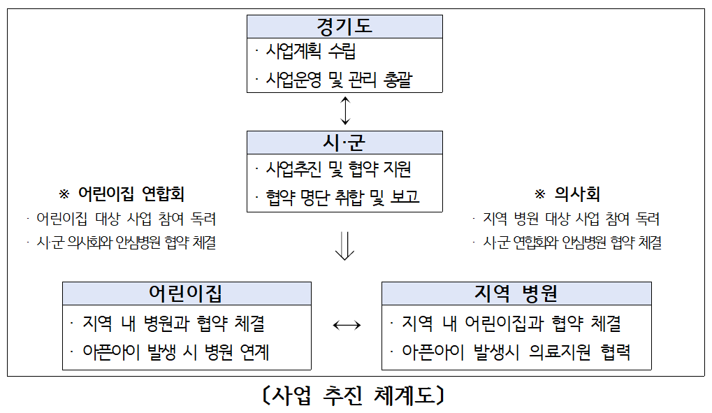 [피앤피뉴스=마성배 기자] 경기도는 6월부터 어린이 환자가 발생했을 때 보다 신속한 진찰과 적절한 의료 서비스를 받을 수 있도록 어린이집과 지역 의료기관을 협력하는 사업을 시작한다.