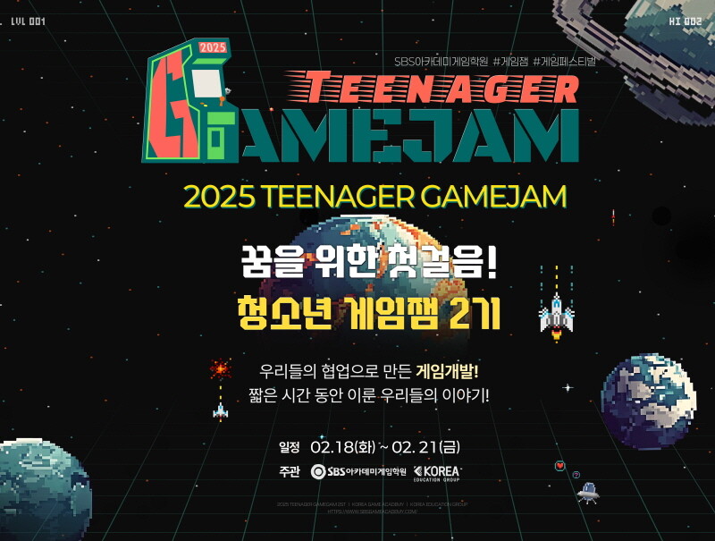 SBS아카데미게임학원의 청소년 게임잼은 제한된 시간 내에 특정 주제를 가지고 자유롭게 게임을 만드는 축제의 장으로, 지난해에 이어 두 번째로 개최된다. 쉽게 접할 수 없는 게임개발 프로젝트 경험을 통해 개발자의 역량을 향상시킬 기회로, 온전한 개발자로 성장하여 입시, 취업 등에서 경쟁력을 확보할 수 있다.