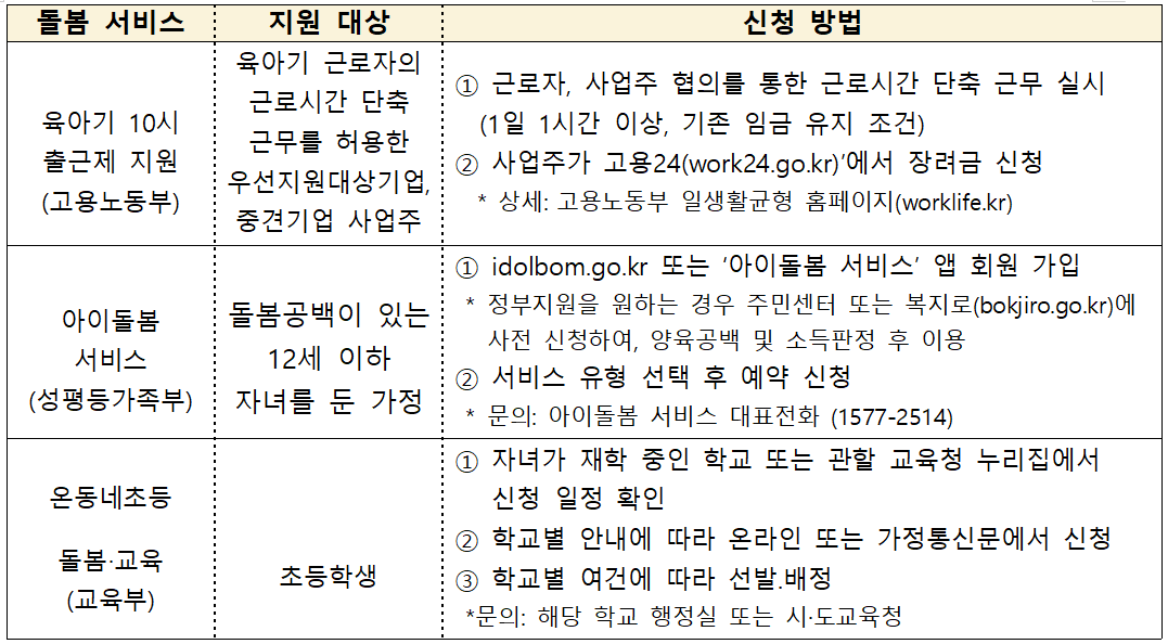 근로시간 유연화·가정 방문 돌봄·학교 기반 돌봄으로 공백 최소화