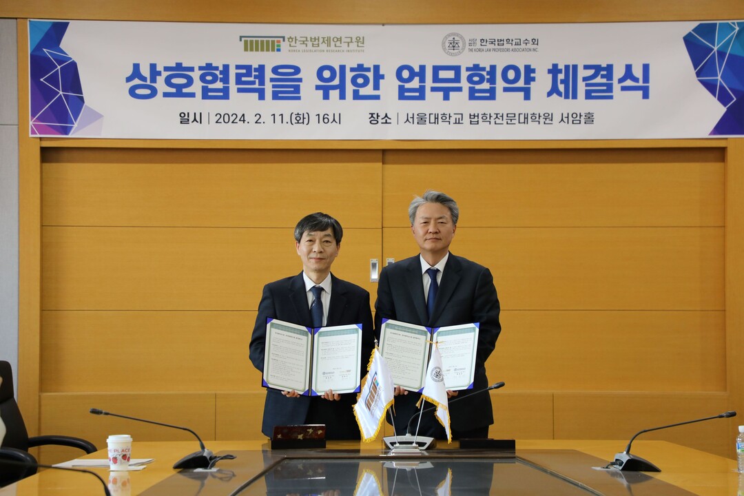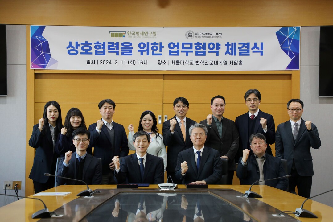 한영수 한국법제연구원장은 “한국법제연구원이 국가의 입법정책을 지원하고 법률문화 향상에 기여해왔다면, 한국법학교수회는 법학 교육의 중심에서 법학의 실용성을 강화하는 역할을 해왔다”며, “이번 협약을 통해 두 기관의 전문성을 결합하여 법학 교육과 법제 연구의 새로운 지평을 열겠다”고 밝혔다.