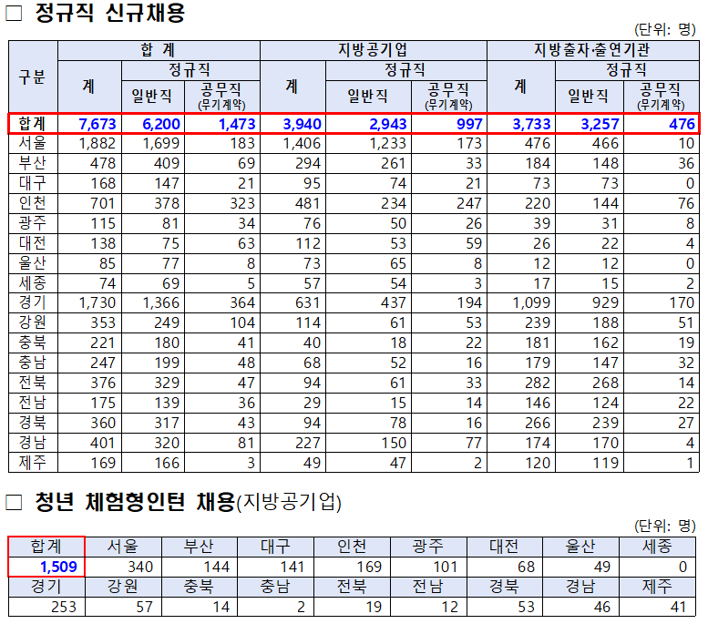 올해 지방공공기관 7,673명 신규 채용…청년 체험형 인턴도 1,509명 모집