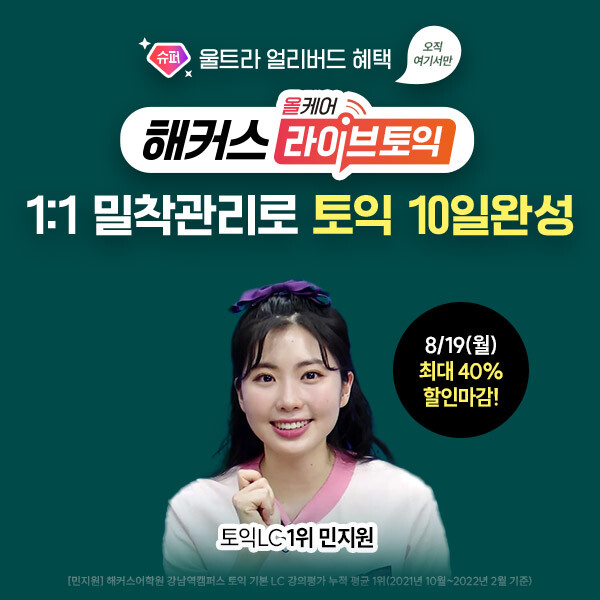 이에 해커스어학원에서 전국 어디서나 수강 가능한 올케어 라이브 강의를 제공하고, 오늘 8월 11일(일) 치러진 토익 정답 실시간 확인 서비스를 포함한 다양한 토익 콘텐츠를 제공한다고 밝혔다.
