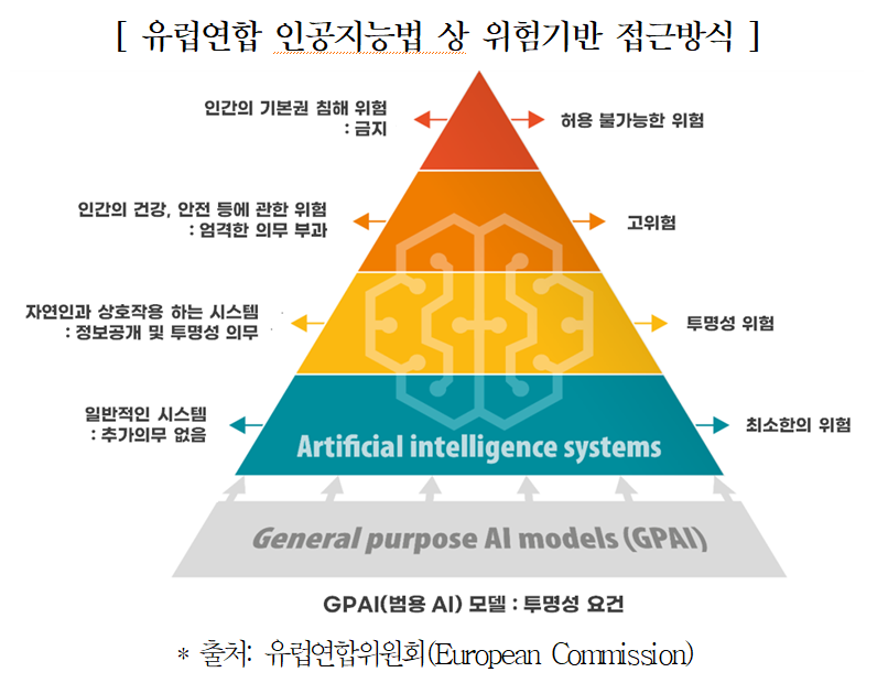 유럽연합(EU)은 지난 3월 ‘인공지능법(Artificial Intelligence Act)’을 승인하며 세계 최초의 AI 규제 법률을 도입했으며, 미국과 중국 등 다른 주요국들도 AI 규제 방안을 가시화하고 있다. 이러한 국제적 조류 속에서 한국지식재산연구원은 생성형 AI의 위험을 효과적으로 관리하면서도 기술 발전을 저해하지 않는 균형 잡힌 규제 방안을 모색하는 데 초점을 맞췄다.