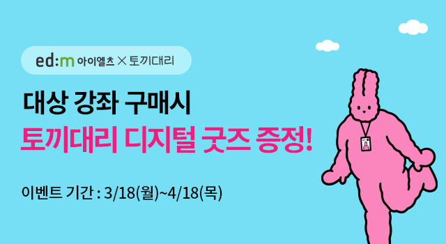 [피앤피뉴스=이수진 기자] edm아이엘츠가 오늘부터 4월 18일(목)까지 한달 간 대상 강좌 수강 시 ‘토끼대리’ 디지털 굿즈를 증정하는 이벤트를 진행한다고 밝혔다.