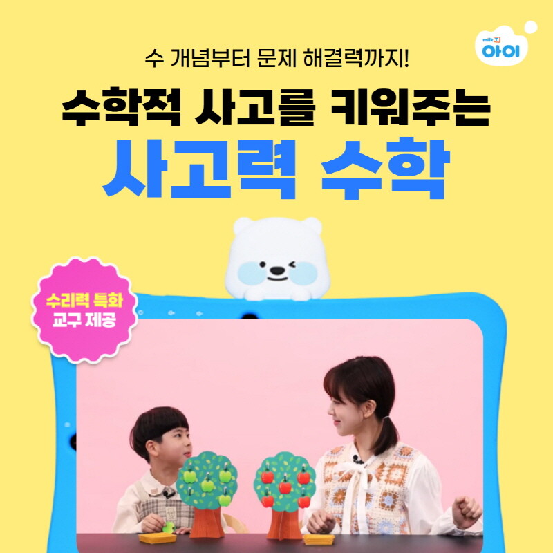 이 외에도 밀크티아이는 ‘생활 속 수학’, ‘노래 속 수학’, ‘동화 속 수학’ 등 유아의 눈높이에 맞춘 다양한 접근 방식으로 수학에 대한 흥미를 높이고, 수리 사고력을 확장한다.