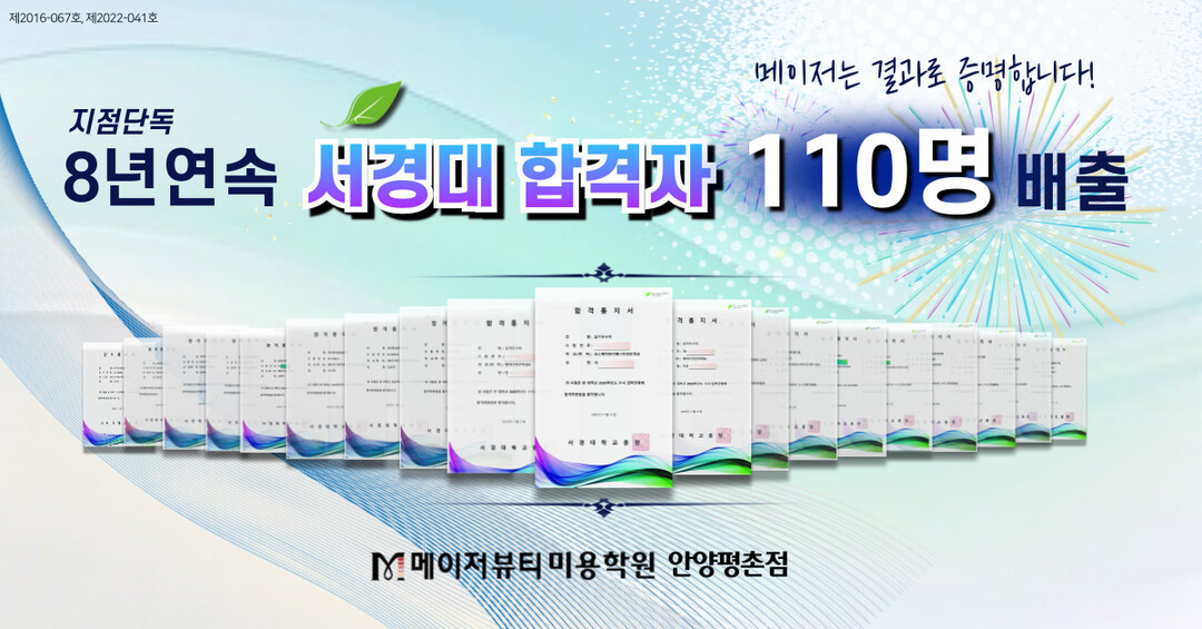 안양미용학원 뷰티명문교육기관 메이저뷰티아카데미 안양평촌 본원은 2026학년도 서경대학교 미용예술학과 실기전형에서 최종 합격자 4명을 배출하며, 8년 연속 지점 단독 누적 합격자 수 110명이라는 놀라운 성과를 달성했다고 전했다.