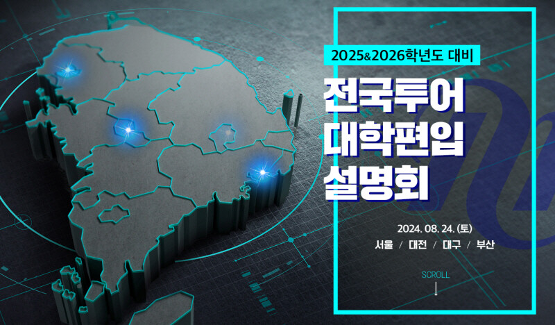 D-4 앞으로 다가온 이번 설명회에서는 2025학년도 및 2026학년도 최신 입시 트랜드 분석을 통해 상위권대, 의약대, 연고대, 미대 편입을 위한 확실한 합격 전략을 제시한다. 서울 코엑스 컨퍼런스룸 401~403호를 비롯해 김영편입 대전, 대구, 부산 캠퍼스에서 동시에 진행하며, 사전 예약 후 참석할 수 있다.