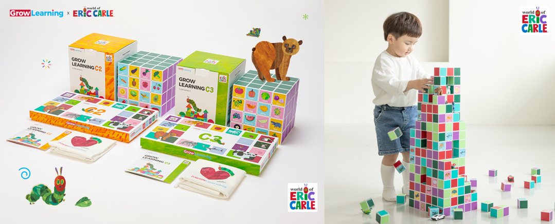 (주)운복(대표 조일현)의 영유아 전문 교구 브랜드 그로우러닝은 미국 동화작가 ‘에릭 칼’과의 콜라보레이션을 통해 자석블럭 신제품 C2, C3를 출시했다고 3일 밝혔다.