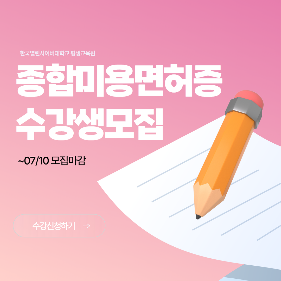 한국열린사이버대학교 평생교육원, 미용전문학사 종합미용면허증 2학기 2차 수강생 모집