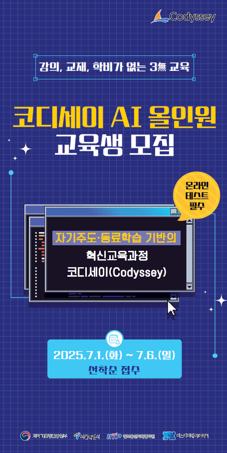 강의도, 교재도, 학비도 없는 ‘3무(無) 교육’으로 화제를 모은 ‘코디세이 AI 올인원’이 2025년도 교육생을 모집한다.