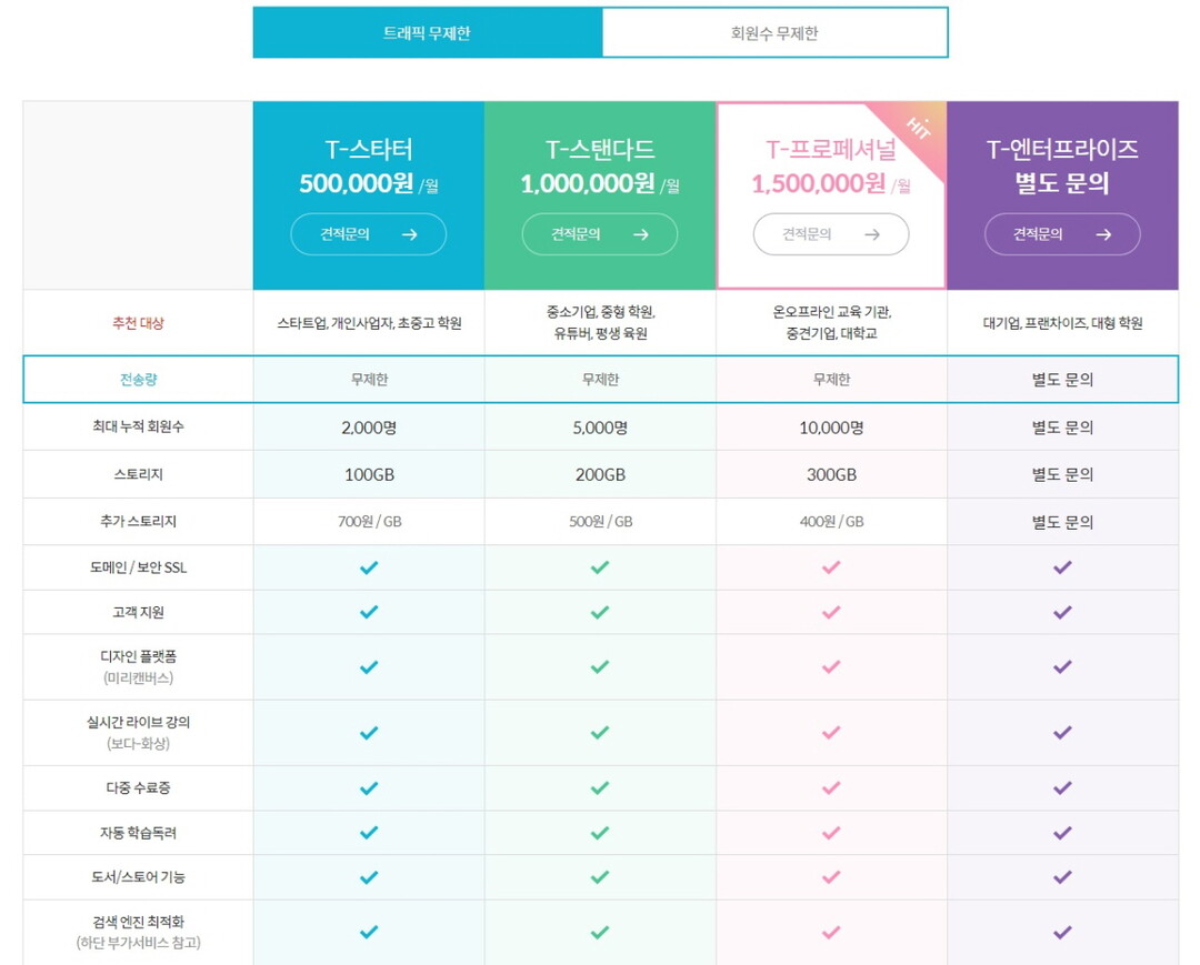 클라우드LMS(학습관리시스템) 전문기업 맑은소프트는 추가 트래픽 과금 없이 무제한 트래픽 사용이 가능한 무제한 트래픽 요금제와 무제한 회원 유치가 가능한 무제한 회원 요금제를 각각 런칭한다고 밝혔다.