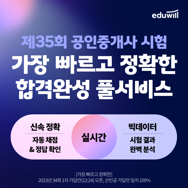에듀윌, 제35회 공인중개사 시험 가답안 서비스 제공…실시간 채점 및 빠른 합격 예측