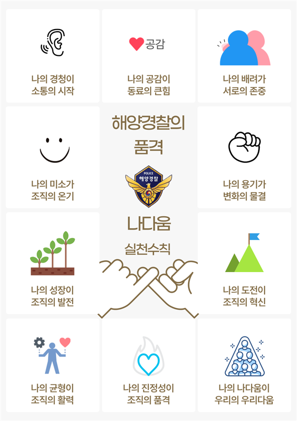 | ▲「위(位)프로젝트 2.0」 해양경찰의 품격 나다움 실천 수칙 |