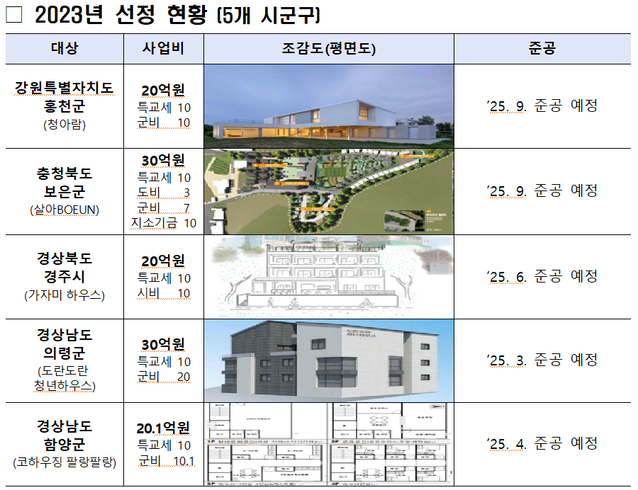 2022년 강원 영월, 전남 강진, 경북 영덕 등 3곳을 시작으로, 지난해 강원 홍천, 충북 보은, 경북 경주, 경남 의령·함양 등 5곳으로 확대했다.