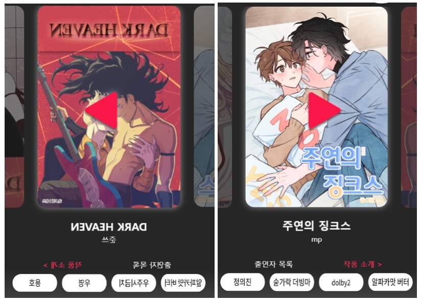 인기 웹툰 ‘다크헤븐’이 새로운 서비스 방식인 ‘플레이툰’으로 재탄생했다. ‘다크헤븐’은 ‘양의 사수’로 잘 알려진 준쓰 작가의 데뷔작으로, 이번에는 ‘푸딩툰’을 통해 생생한 보이스와 현실감 넘치는 음악, 음향 효과가 더해진 ‘플레이툰’ 형식으로 독자들을 찾아간다.