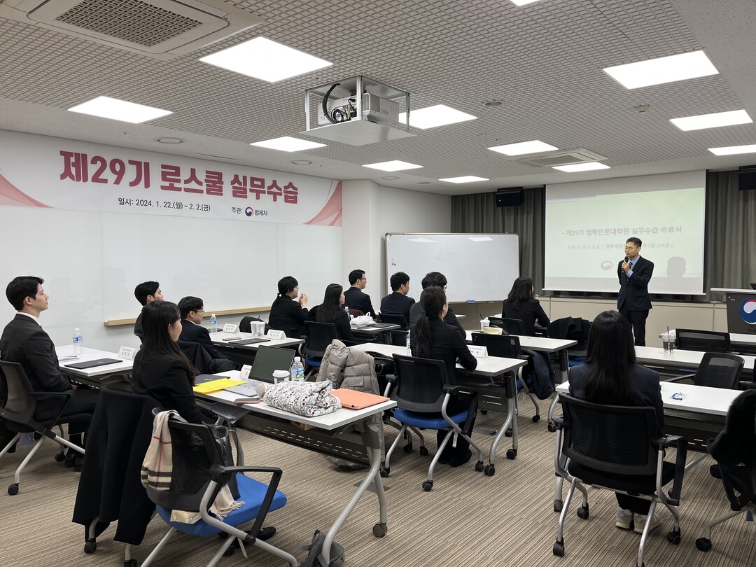 법제처는 1월 22일부터 2월 2일까지 법학전문대학원(로스쿨) 재학생 12명이 법제 업무를 직접 체험해 보는 ‘제29기 법학전문대학원 실무수습’을 실시했다고 밝혔다.