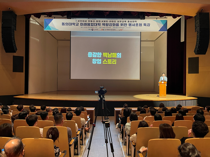 [피앤피뉴스=마성배 기자] ㈜잇올의 백태규 의장과 백다애 대표가 지난 9월 28일 동의대학교 미래융합대학에서 주최한 명사 초청 특강 연사로 초대되어 ‘용감한 백남매의 창업 스토리’라는 주제로 강연을 진행했다.