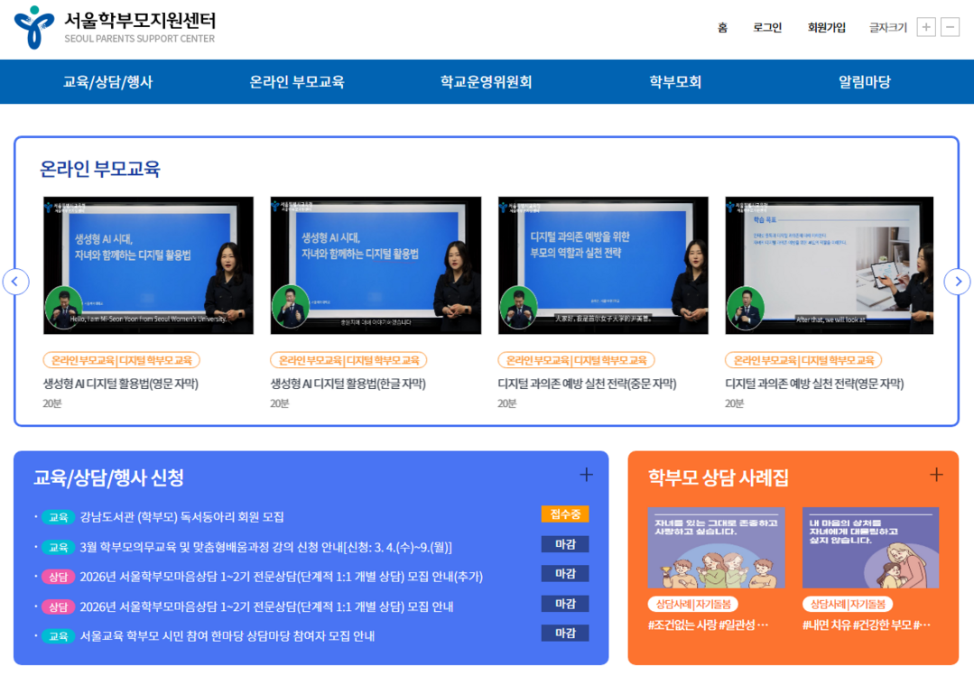 ▲서울학부모지원센터 홈페이지(출처: 서울시교육청)