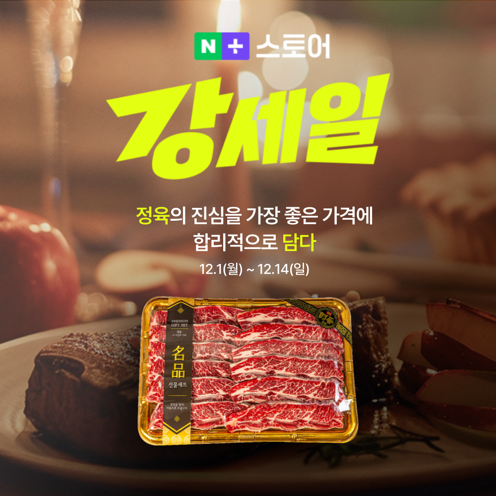 이번 12월 강세일 프로모션은 ‘세일계의 최강자’라는 이름에 걸맞게 한 해 중 가장 큰 폭의 할인율을 적용하며, 선물용·가정용 모두 합리적인 가격으로 구매할 수 있는 절호의 기회로 꼽힌다. 프로모션 기간은 연말 모임을 위한 메뉴, 송년 선물, 홈파티 등 다양한 카테고리의 푸드들이 인기가 많은 시기다. 정육담다도 이에 발맞춰 이번 프로모션을 통해 연말 모임 메뉴, 품격 있는 송년 선물, 혹은 홈파티 메인 요리로 활용하기 좋은 프리미엄 정육 상품들을 합리적인 가격에 선보여 고객들의 연말 식탁을 풍성하게 만들 계획이다.