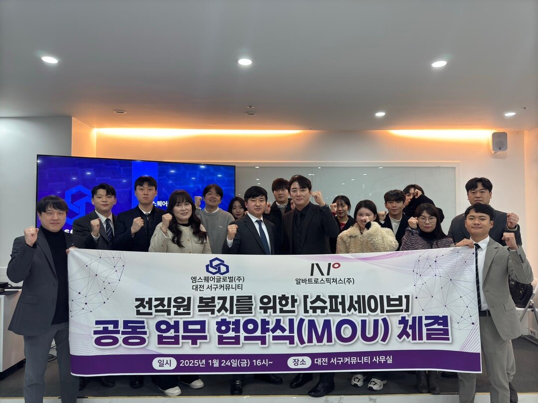 엠스퀘어글로벌(주) 대전 서구 커뮤니티와 알바트로스픽쳐스(주)가 지난 1월 24일 직원 복지 향상 및 청년 우대 정책 강화를 위한 공동 업무 협약(MOU)을 체결했다고 밝혔다.
