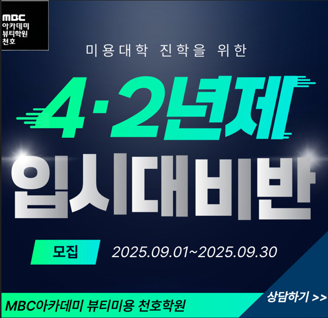MBC아카데미뷰티학원 천호지점은 뷰티 전공 교수진과 현장 경험이 풍부한 강사진이 직접 지도하며, 수강생들의 실무 적응력을 높이고 있다. 국가자격증 과정뿐 아니라 입시·취업·창업까지 연계된 맞춤형 커리큘럼을 운영하고 있으며, 이번 서경대 모의고사 수상 성과 역시 체계적인 교육 프로그램과 실전 중심 수업 환경이 뒷받침되었기에 가능했다.