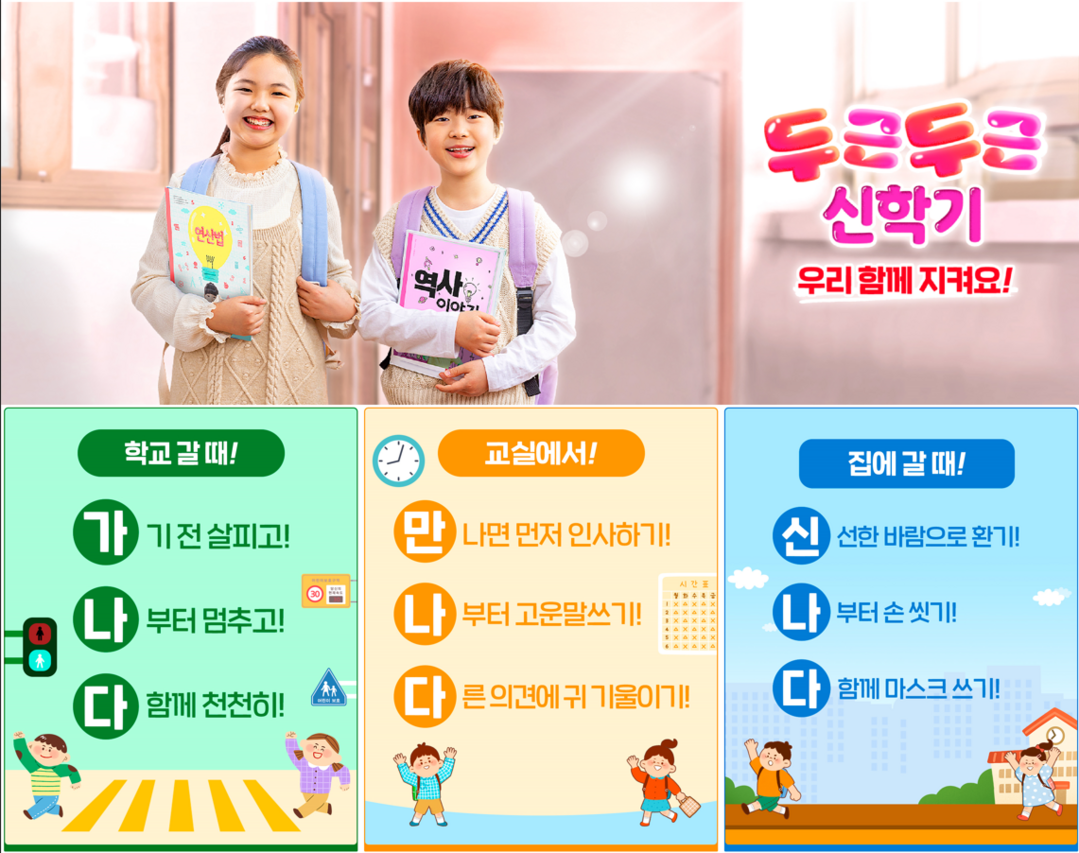 이번 캠페인은 학생들의 등·하굣길 안전을 강화하고, 배려하는 학교문화를 정착시키며, 건강한 생활습관을 형성할 수 있도록 돕기 위해 기획됐다. 특히, 누구나 쉽게 기억하고 실천할 수 있도록 ‘가나다’, ‘만나다’, ‘신나다’라는 삼행시 형태로 구성해 실천력을 높였다.