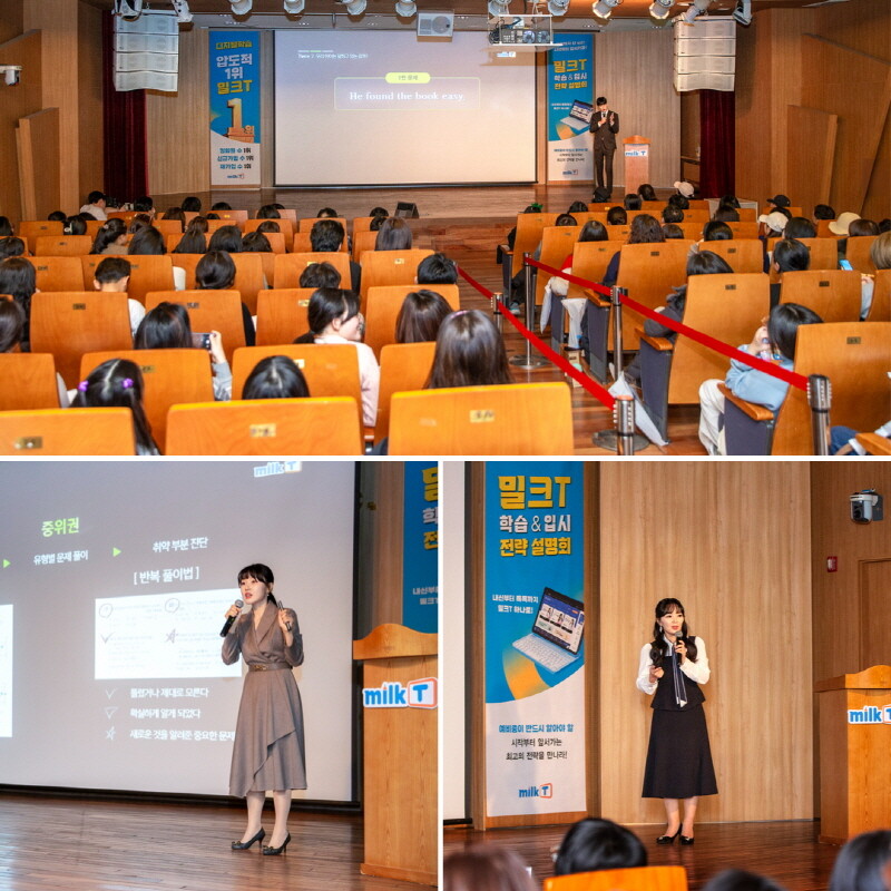 그리고 2부에서는 밀크T 최정예 강사진이 ‘과목별 최상위 학습 전략’을 공개했다. 전 과목 성적 향상에 바탕이 되는 국어 공부법을 엄은나 선생님이, 감 독해에서 벗어나는 논리적 영어 학습 전략을 윤빈 선생님이, 새로운 수능에서 여전히 변별력의 중심에 있는 수학 공부법을 김봄 선생님이 강연했고, 실전에 바로 적용할 수 있는 학습법이라며 학부모들에게 극찬을 받았다.