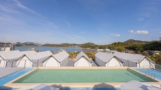 또한 미온수 수영장이 마련되어 있어 사계절 내내 여수 바다의 풍광을 감상하며 여유로운 휴식을 취할 수 있다. 추가적인 소비를 줄이고 만족스러운 서비스를 제공하기 위해 숙박비 외에 별도의 추가 비용 없이 다양한 서비스를 이용할 수 있도록 구성되어 있다.