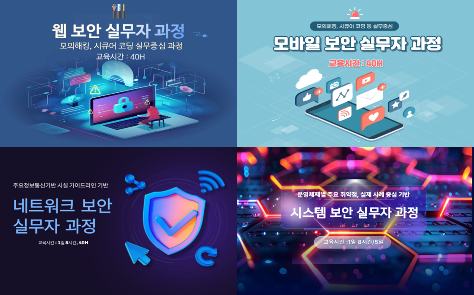 이번 사이버 보안 전문 교육 과정은 3월 3일부터 4월 24일까지 진행된다. 교육 내용은 웹 및 모바일 서비스 보안을 비롯해 네트워크 보안, 시스템 보안 등으로 구성된다. 웹과 모바일 앱 서비스의 취약성 점검 및 대응 기술을 다루며, 네트워크 위협 관리와 보안 기술 활용을 위한 이론 및 실습 교육이 병행된다. 또한 Unix, Linux, Windows 등 운영체제별 보안 위협 점검과 대응 체계 구축을 중심으로 한 시스템 보안 교육도 함께 진행될 예정이다.
