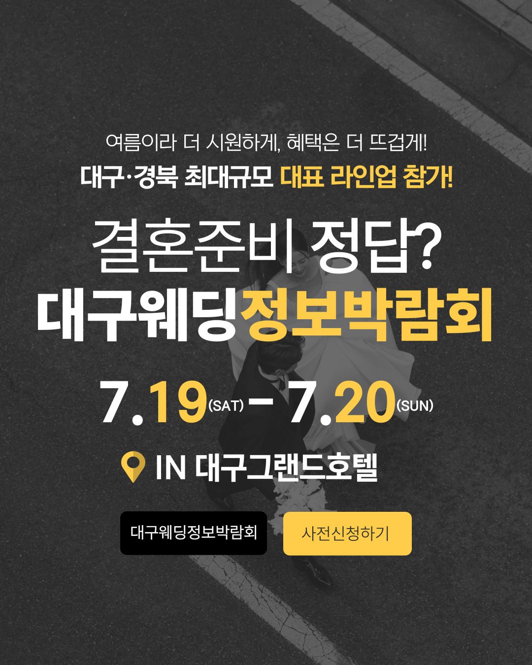 대구·경북 지역 최대 규모의 웨딩 행사인 대구웨딩정보박람회가 오는 7월 19일(토)과 20일(일) 이틀간 대구 그랜드호텔 지하 1층에서 열린다.