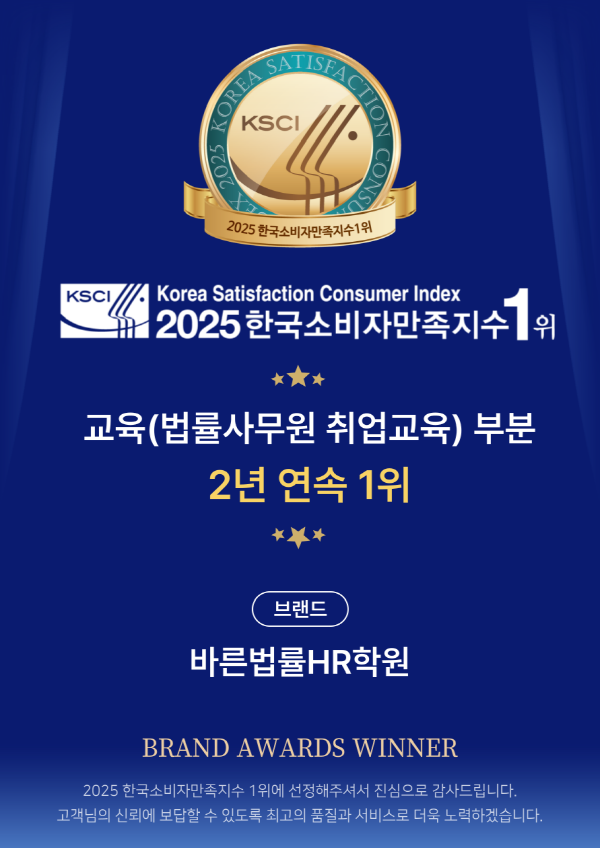 바른법률HR학원, 2025 한국소비자만족지수 1위 법률사무원 취업교육 부문 선정