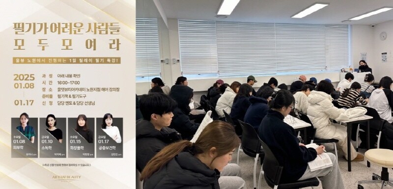 올댓뷰티아카데미 관계자는 “상시 기능사 필기시험에 대비해 수강생들이 많이 어려워하는 과목을 중심으로 릴레이 특강을 진행했다”며 “강의장 책상이 부족할 정도로 많은 수강생이 특강에 참여하여, 필기 합격을 위한 열정 넘치는 특강이 진행됐다”고 전했다.