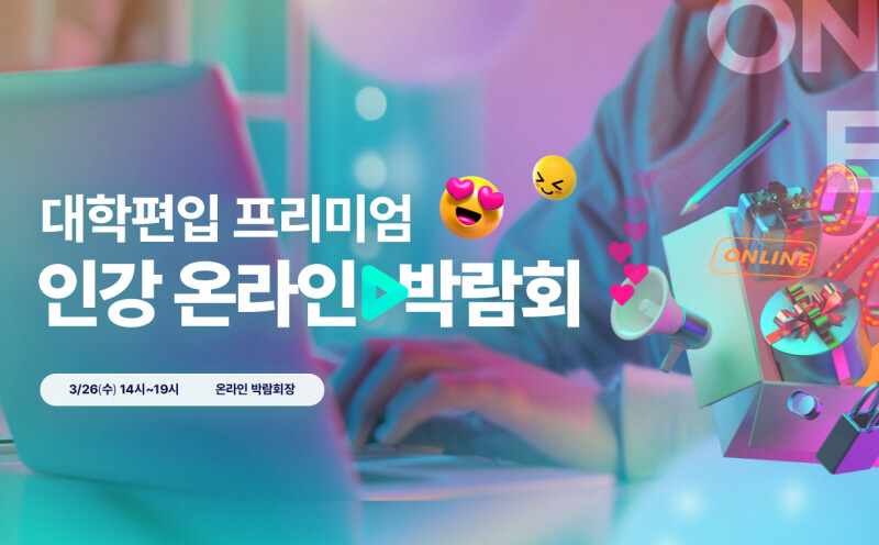 대학편입 프리미엄 인강 온라인 박람회는 오는 26일(수) 14시~19시 온라인 박람회장에서 진행되며, 사전 예약자에 한해 참석할 수 있다. 대학편입 입시/합격 전략 강연을 비롯해 인강 교수진의 라이브 컨설팅, 편입 합격생 노하우 공개 등이 준비되어 있으며, 수강생들을 위한 각종 수강료 지원 혜택도 제공된다.