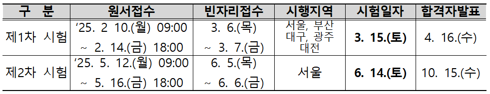 원서접수 1차 시험 2월 10일~14일, 시험 3월 15일 시행