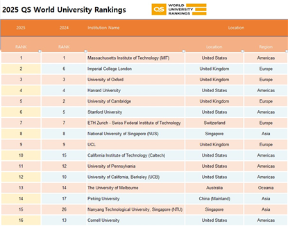 1994년부터 매해 세계대학들을 평가해 전체 순위와 학과별 순위를 공개하는 QS 세계 대학 순위는 대학 평가기관 중 전세계적으로 가장 공신력을 인정받고, 실제로 정부 기관이나 기업에서 참고하기도 한다.