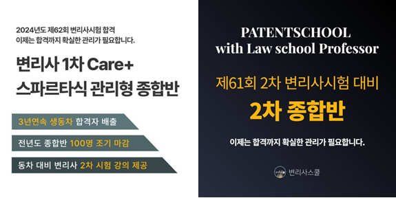 한편 변리사스쿨은 실력과 경험을 갖춘 전문 강사진이 제공하는 수준 높은 강의와 수험 정보가 장점으로 수강자의 수준에 맞춰 학습할 수 있는 다양한 시즌 인강과 부족한 부분을 보강할 수 있는 강의 기획전 등 맞춤형 학습을 제안하고 있다