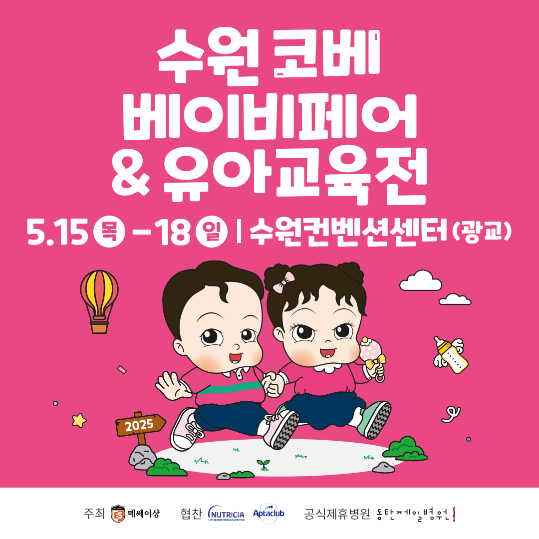 경기 남부 최대 규모의 영유아 전문 전시회 ‘수원 코베 베이비페어&유아교육전’이 오늘(15일) 개막했다. 이번 행사는 5월 18일(일)까지 수원컨벤션센터(광교)에서 4일간 진행되며, 영유아 관련 다양한 브랜드와 제품을 한 자리에서 만나볼 수 있다.