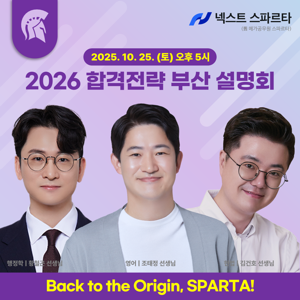 관리형 독서실 브랜드 넥스트 스파르타(구. 메가공무원 스파르타)가 오는 10월 25일 부산 서면센터에서 ‘2026 합격전략 부산 설명회’를 개최한다고 밝혔다.