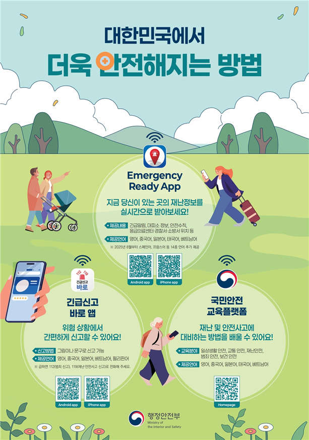 행정안전부는 현재 외국인을 위한 디지털 안전서비스 3종을 운영 중이며, 이번 캠페인을 통해 보다 널리 알릴 계획이다.