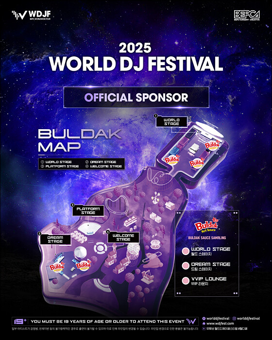 삼양식품 불닭이 오는 6월 14일(토)~15일(일) 양일간 과천 서울랜드에서 열리는 ‘2025 월드 디제이 페스티벌(이하 월디페)’에 공식 스폰서로 참여한다.
