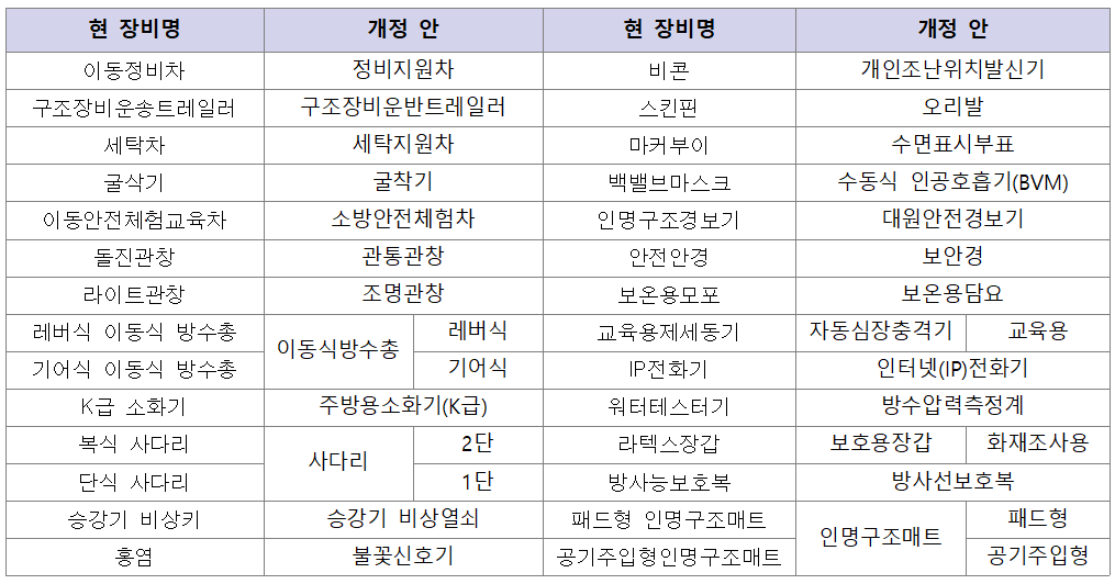 | ▲소방 장비 명칭 변경(소방청 제공) |