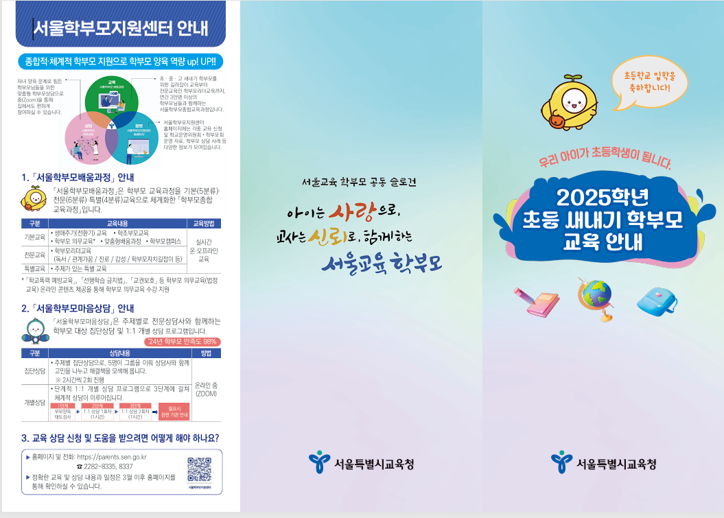 서울시교육청은 앞으로도 신입생 학부모들의 요구를 반영한 다양한 교육 콘텐츠를 개발해 초등 1학년 학부모의 역량을 강화하고, 자녀의 학교생활에 대한 이해를 높일 계획이다.