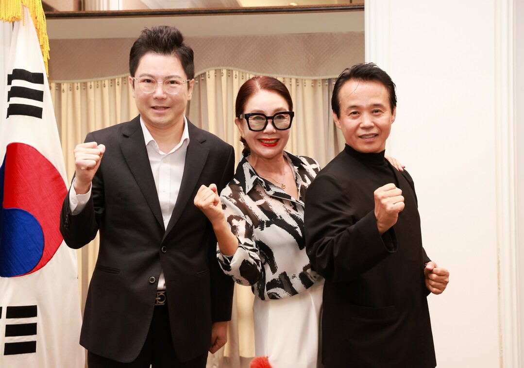 <사진2: 왼쪽부터 영화 '7인의황후' 제작총괄을 맡은 이일섭 STN 방송사 부회장, 영화 주연배우 김청, 영화감독 신철승>