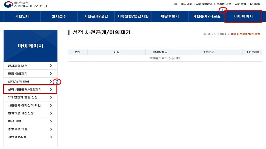 ○ 확인방법 : 인사혁신처 사이버국가고시센터 참고