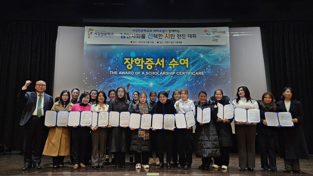 서강전문학교와 태허포럼이 공동 주최한 사단법인 ‘남한사회를 선택한 시민’ 전진대회가 성황리에 마무리 됐다. 서강전문학교 경찰행정학과, 사회복지학과가 진행을 한 이번 행사는 남한 사회를 선택한 시민들의 성장과 발전을 위한 다양한 프로그램을 소개하고, 전문가 및 내외빈들과 함께하는 뜻 깊은 자리로 마련되었다.