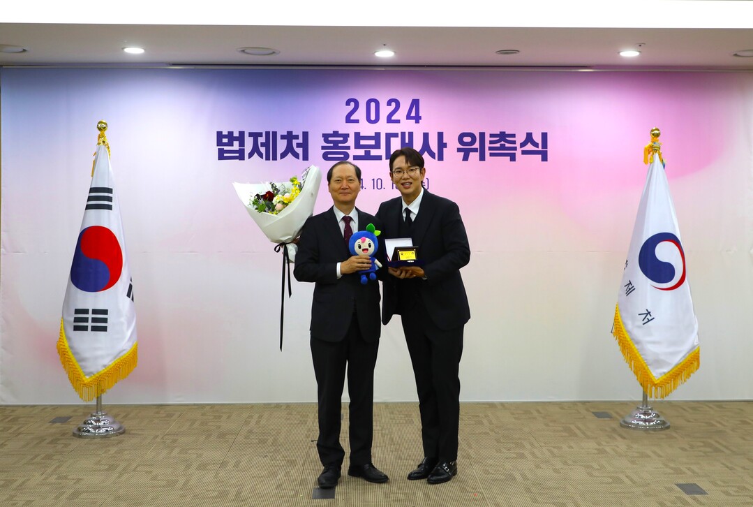 [피앤피뉴스=마성배 기자] 법제처(처장 이완규)는 16일 방송인 장성규를 법제처 홍보대사로 위촉하고 정부세종청사에서 공식 위촉식을 가졌다.